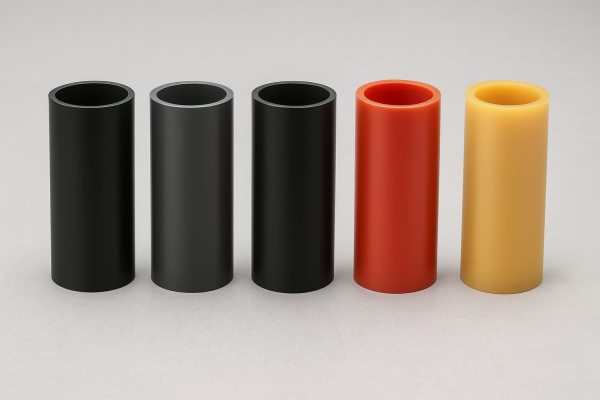 Coestan elabora sus manguitos, también llamados fajas, en cauchos naturales como la goma beige semiflotante, goma caramelo o el látex, así como en cualquier caucho sintético y en silicona para la industria alimenticia. Podemos certificar como FDA el material utilizado y también el material de unión para construir el manguito. Las medidas suelen especificarse con el diámetro interior, el grueso del material y la longitud necesaria.